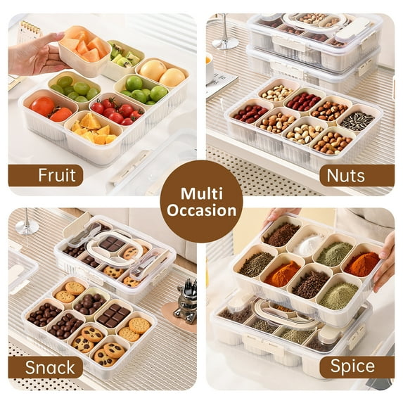 - 【Multi-function】This vegetable tray is suitable for candy, fruits, nuts, potato chips, popcorn, spices, etc. Different types of food can be stored separately without mixing flavors.