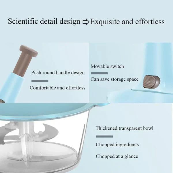 The Manual Push Chopper is designed to make vegetable cutting fast, easy, and mess-free. With a simple push-down mechanism, it chops vegetables evenly in seconds without the need for electricity. The sharp stainless steel blades deliver smooth and precise cuts, while the transparent container allows you to see your progress. Compact, durable, and easy to clean, this chopper is ideal for onions, garlic, tomatoes, carrots, and more. A perfect kitchen tool for everyday cooking and meal preparation.